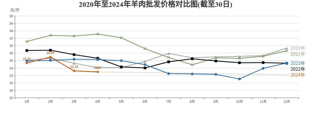 羊肉批发、农贸、超市价格分别为每斤22.97元、37.56元、44.12元,环比分别下降1.16%、下降0.82%、上涨0.8%,同比分别下降12.56%、5.63%、9.66%。