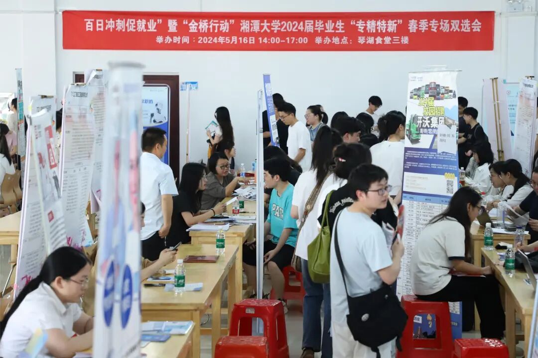据悉,本次活动全面落实中央、省委、市委关于高校毕业生就业工作的决策部署,根据湖南共青团促进大学生就业“金桥行动”相关工作要求,在团湖南省委和湘潭大学党委高度重视下,团湘潭市委主动加强同湘潭大学团委、市人社局等单位联系对接,进一步整合各方资源,共同承办2024年湖南共青团促进大学生就业“金桥行动”湘潭大学专场招聘会,全力促进广大毕业生更高质量更加充分就业。本次活动共计吸引82家省内外优质企业到现场开展人才招引活动,招聘人数达1000余个,可投职位共117个。