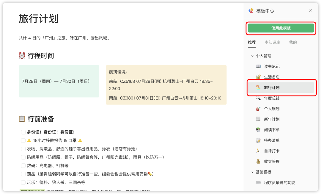 ❷ 找到「旅行模板」,点击「使用此模板」,就完成啦~
