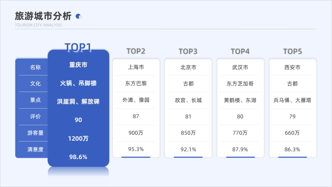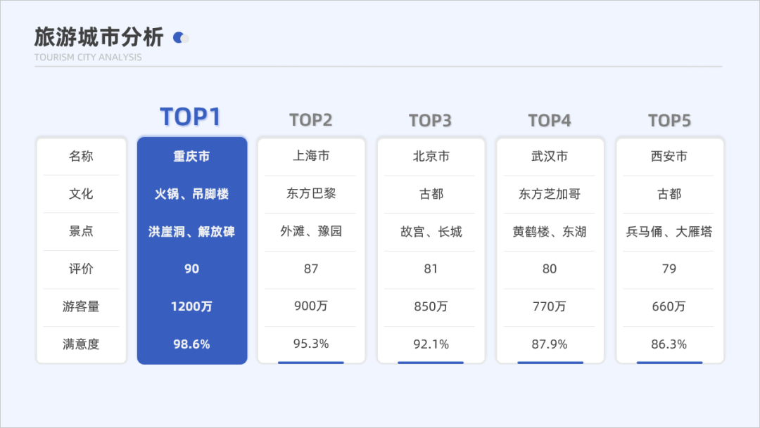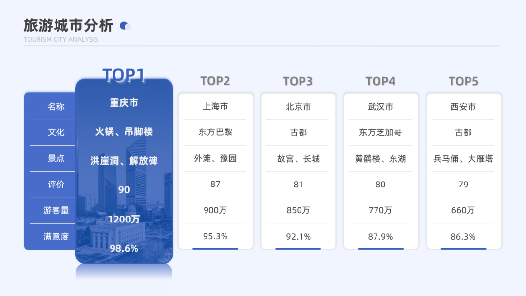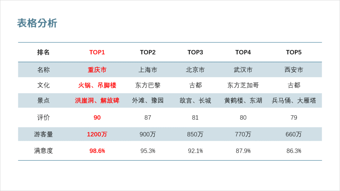 继续看第二个案例,这个案例是一个多城市对比表格,主要强调排在第一位的重庆市。