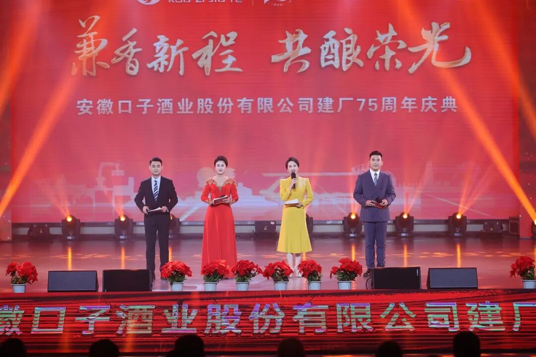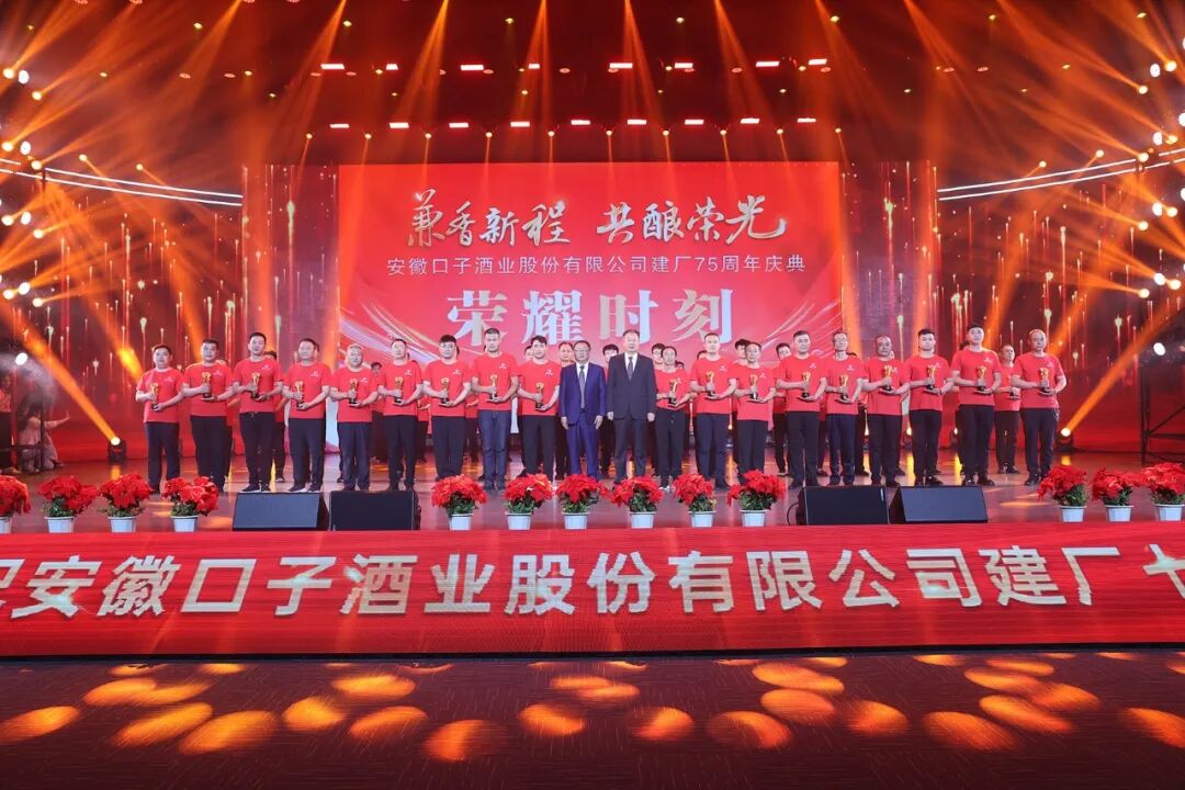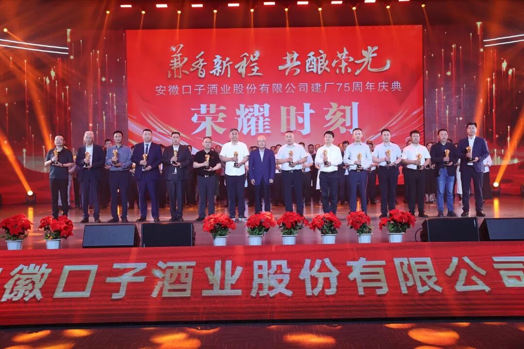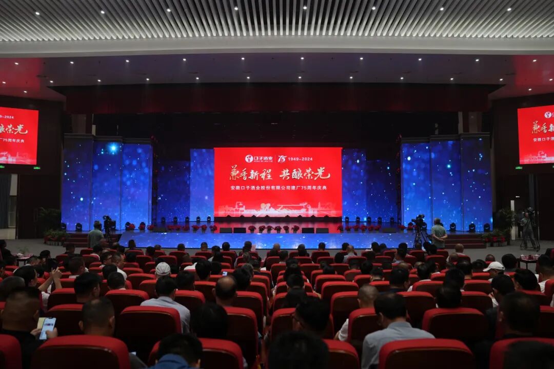 2024年5月18日,安徽口子酒业股份有限公司迎来建厂75周年纪念日,下午15时,以“兼香新程 共酿荣光”为主题的口子酒业建厂75周年庆典活动在口子酒业东山产业园会议中心盛大启幕。公司领导、职能部门主管以上人员、营销公司后勤主管以上及全体业务人员、车间班组长以上人员及全国经销商、供应商代表参加活动,见证并庆祝这一历史性的里程碑事件。
