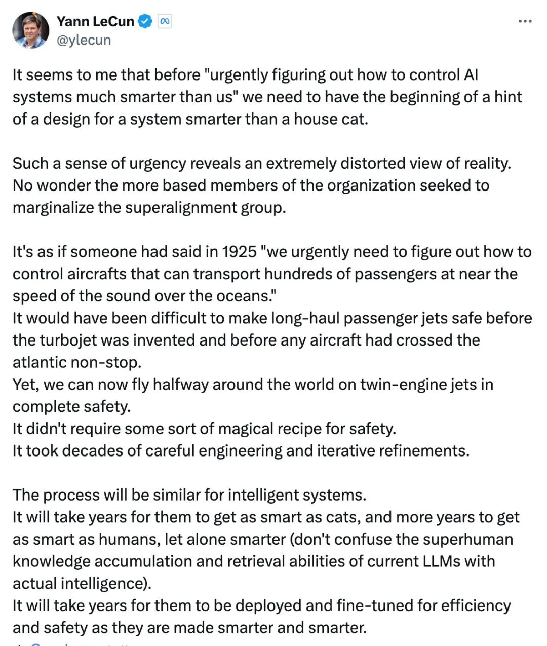 正当你以为这疯狂的一周要过去时,OpenAI 的「宫斗大戏」突然开启第二季。OpenAI 「超级对齐」团队的负责人 Jan Leike 在离职后,没有像 Ilya 那样留下看似友好的告别,而是连发 13 条小作文自述在内部遭遇的打压,包括被砍掉计算资源, Jan Leike 表示:放弃这份工作是我人生中最艰难的决定之一,因为我们必须尽快找到方法来引导和控制那些远比我们智能的 AI 系统。