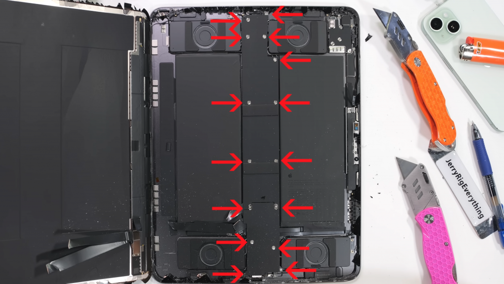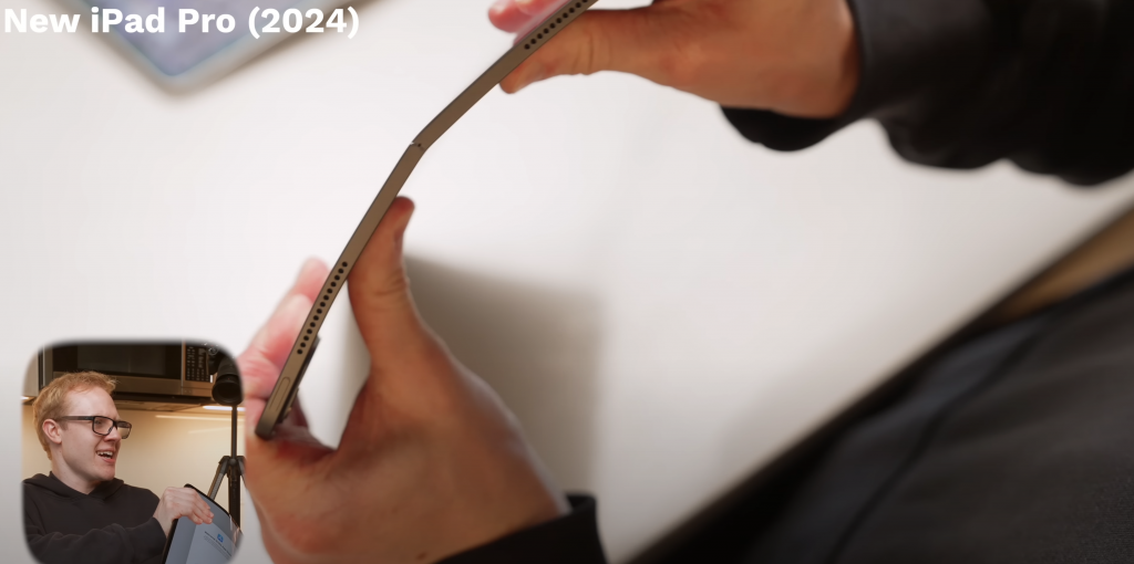全新 iPad Pro 在性能、屏幕等各个方面都有不少亮点,不过,最惊艳的还得是这块平板的「薄」度:11 英寸版本为 5.3 毫米,而 13 英寸来到 5.1 毫米,比 iPod Nano 还要薄。不过,如此极致的轻薄,不免让人担心这块平板会不会在耐用度上有所欠缺,出现「弯折」的情况。毕竟,苹果的轻薄产品是有过类似的「黑历史」的:iPhone 6 被「坐弯」,2018 代 iPad Pro 甚至能够被徒手轻易掰断,使苹果再一次陷入「弯折门」争议。iPhone 6 上的「弯折门」争议,图源:Forbes因此,作为「史上最薄苹果设备」的全新 iPad Pro,会不会更容易被掰弯,成为了不少消费者最关心的问题。这个问题在今天终于有了答案。一些 YouTube 主播对这款新设备进行了「百般折磨」,以此验证它是否足够坚固。JerryRigEverything 试图通过徒手的方式掰弯新款 iPad Pro,在横向用力时,iPad Pro 展现了不错的支撑能力,除了玻璃有点开裂和剥离,iPad 本身没有太大损坏主播表示称,iPad Pro 结构性完整得可疑,怀疑苹果用了「黑魔法」。作为对比,第十代 iPad 在 JerryRigEverything 的手下,很轻易就横向断裂了。不过当 JerryRigEverything 从垂直方向用力掰 iPad Pro,这款产品也很快从充电口处发生断裂,这也是 iPad Pro 的主要弱点所在。当然,在掰碎 iPad Pro 的过程中,主播也用了不小的力气,也就是说只要不刻意去用力掰,iPad Pro 不太容易发生弯折和断裂。另一位 YouTube 主播 Apple Track 的测试稍微没那么「暴力」,他用力掰了大号的 2022 款 iPad Pro 和 2024 款iPad Pro,在对这两款平板施加了不小的力气后,两款平板虽然没有断裂,但在形态上都发生了明显的弯折。不过,新款 iPad Pro 要比上一代的弯折幅度较小一点,当然这也可能是因为主播对两款产品施加的力量有所不同,但考虑到新款 iPad Pro 的厚度仅有 5.1 毫米,比上一代足足少了 1.3 毫米,这个成绩也可以说是非常优秀的。Apple Track 也在竖直方向上进行了测试,结果和 JerryRigEverything 一致,两代 iPad 都发生了断裂,并且开裂不仅仅发生在充电口,在另一边的位置用力掰也会发生断裂。Apple Track 也提到了一个比较有意思的点:即使已经被「掰断」,这些 iPad Pro 的屏幕和摄像头都能继续运作。而主播 MobileReviewsEh 则借助了一点外力,来测试新款的 iPad Pro 中心部分的承重能力。在施加的重量来到 70 磅(约 31.75 千克)时,iPad Pro 终于「不堪重负」地出现了较大程度的弯折,在重量达到 95 磅(约 43.09 千克)时发生开裂。MobileReviewsEh 也用同样的方法测试了 22 款的 iPad Pro,结果在 90 磅(约 40. 82 千克)的时候发生开裂。上面的是 2022 款,下面的是新款,可以看出新款的开裂程度也更低不过,主播也指出,在重量来到 70 磅时,22 款 iPad Pro 的弯曲程度要比 24 款更小。结论就是,新款 iPad Pro 虽然薄得难以置信,但是坚固程度上确实实现了苹果的承诺,和上一代基本相当,正常使用不太可能发生较大的弯折。发布会上,苹果表示和上一代相比,新款 iPad Pro 坚固程度丝毫不减苹果硬件主管 John Ternus 在日前接受采访时表示,新款的 iPad Pro 具有新的内部结构,其中新的金属盖位于主板的顶部,沿着设备中部分布,在中间形成了一个「肋骨」支撑着 iPad。Ternus 表示,这个设计不仅极大提升了产品的坚固程度,也更有助于散热。从 JerryRigEverything 视频中的拆解来看,确实能看到在 iPad Pro 内部,有一条金属盖横跨了整台 iPad。从测试结果看来,担心这款超薄设备容易弯折的用户可以放心了,新款 iPad Pro 远远没有看上去那么弱不禁风。虽然说新款 iPad Pro 确实不容易被折断,但是作为一款非常纤薄的设备,设备出厂的微幅弯折是不可避免的,不过,据苹果的说法,这种弯折不会随着使用时间变大,当然也不会变小。JerryRigEverything 的 iPad Pro 开箱就带有一丝丝弯折![]()