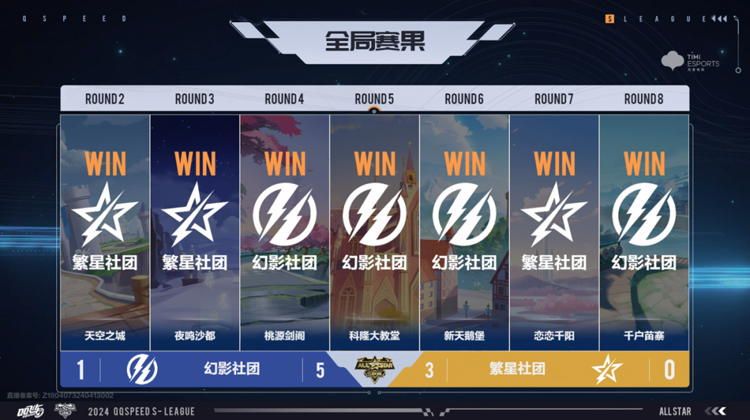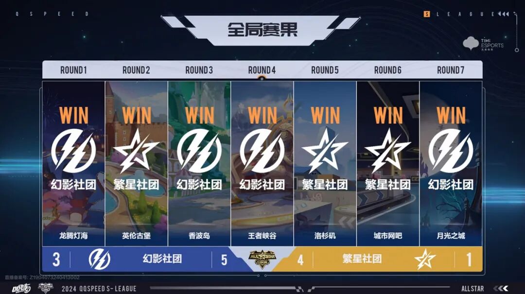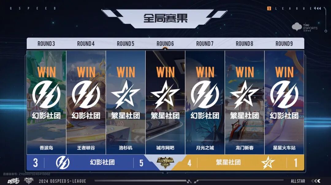 六位选手全力以赴,将比赛全部拉满!九局比赛过后,幻影社团略胜一筹,以5:4的比分赢下经典幻形赛。此时幻影社团也以3:1的大比分占据领先优势。