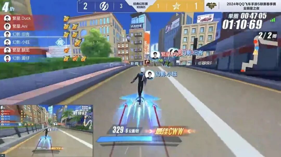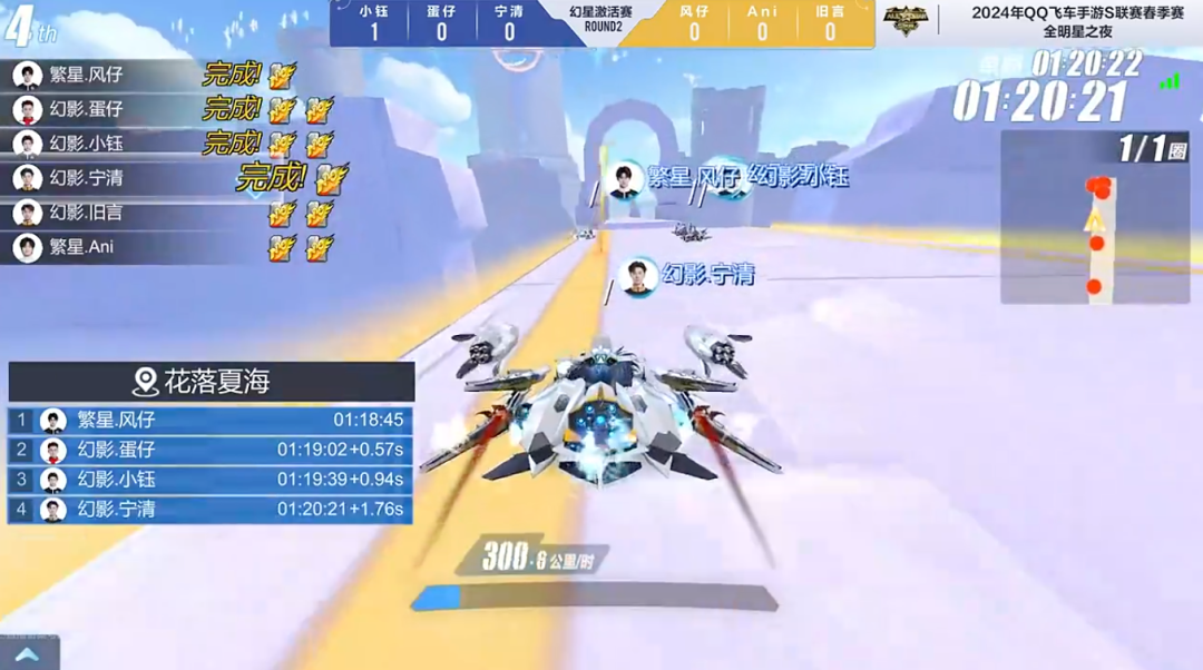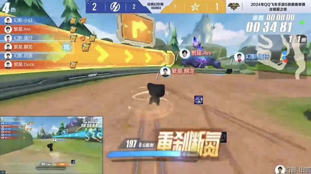第六局繁星.风仔冲撞时出现反向ECU失误,幻影.宁清不断后追幻影.小钰,但未能形成反超,幻影.小钰成功冲线。第七局霍比特之旅,繁星.风仔顶住压力完成冲线。第八局最后终点前幻影.小钰完美通过,拿下第四分。最后一局绿野逐风,幻影.宁清使用ECU强势反超幻影.小钰,抢先一步过线。在本轮比赛中幻影.小钰获得4分,拿下第一。恭喜幻影.小钰以精湛的技术荣膺2024年S联赛春季赛全明星之夜“次元车神”称号!