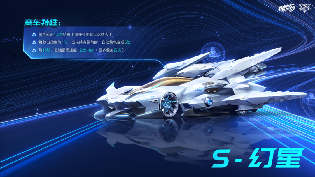 赛车特性:氮气延迟1.5秒结束(漂移会终止延迟状态)。每秒自动集气4%,当未持有氮气时,自动集气变成5倍。每15秒,基础最高速度+2.5km/h(最多叠加四次)。