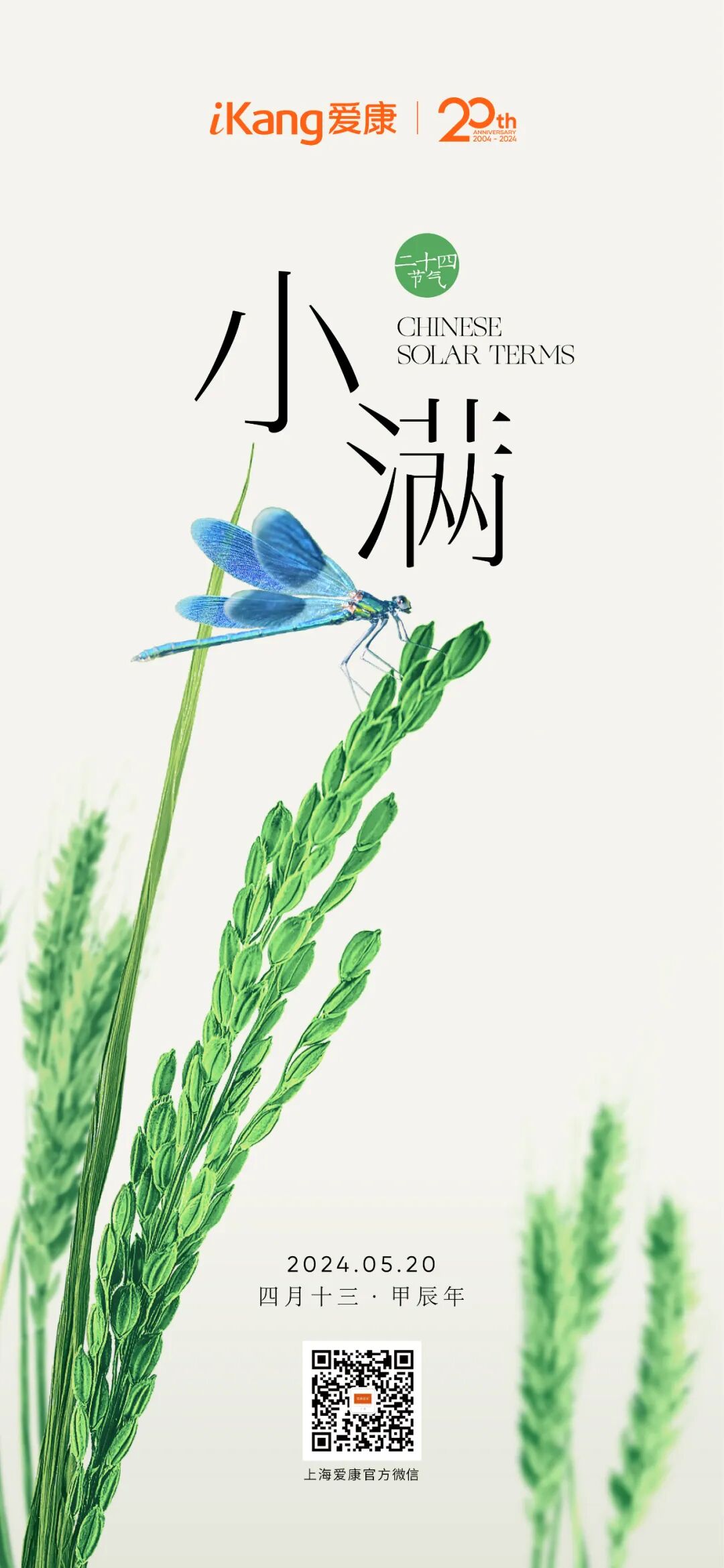 “小满”是二十四节气中的第八个节气,也是夏季的第二个节气。太阳到达黄经60度时,“小满”便开始了。《月令七十二候集解》说:“小满,四月中。小满者,物至于此小得盈满。”此时,北方地区小麦等作物的籽粒开始灌浆,变得饱满,但又没有成熟,所以是“小满”;南方地区降水增多,河水渐渐“满”了起来,又可称之为另一种“小满”。