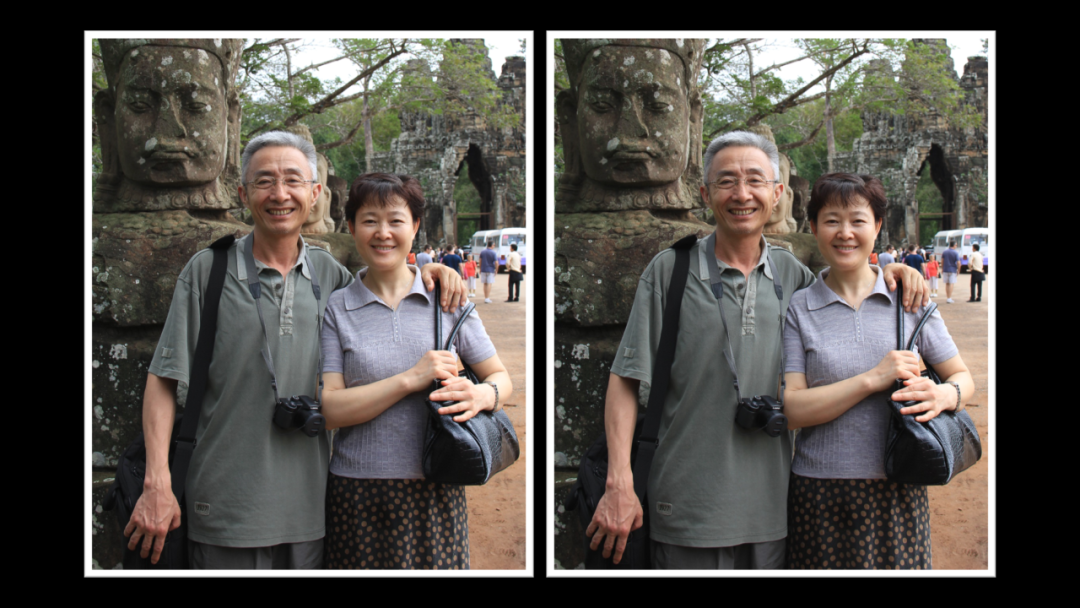 对于这种不太高清的照片,比如狗仔偷拍的,这张曾经汪峰章子怡的恩爱照: