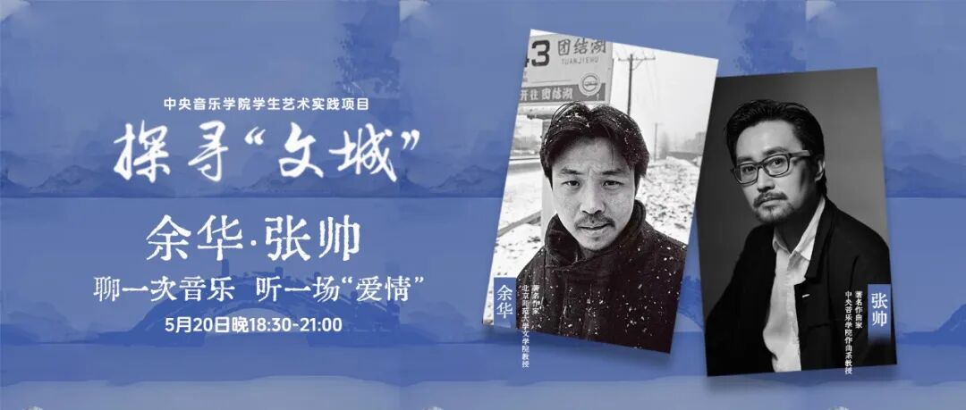 5月20日 18:30-20:30,作家余华将对谈中央音乐学院作曲系教授张帅。聊一次音乐,听一场“爱情”,寻灵感为线索,借文学之想象,呈音乐以载体,与读者朋友们携手,分享每个人心中独一无二的《文城》。