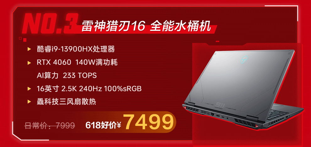 雷神猎刃16高性能游戏本