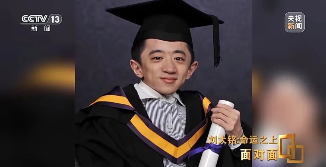 1994年,刘大铭出生于甘肃兰州的一个军人之家,一出生就被诊断患有成骨不全症,医生断言他活不过12岁,但他的父母坚持让他和健全孩子一样上学。因为容易骨折,刘大铭的求学生涯,经常与轮椅和手术相伴。