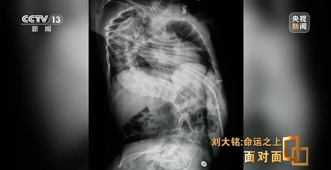 18岁时,刘大铭的病情再度恶化,脊椎严重变形为巨大的S形,整个胃部被挤压成细条状,唯一完好的眼睛,也开始变得模糊,这一年,几乎大半个中国的医院都给他下了“不能手术”的最后宣判。然而,强烈的求生欲望,让刘大铭开始了自我拯救之路。