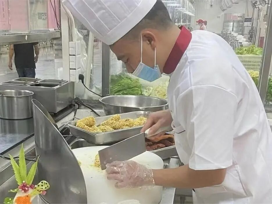 刘业生,菊苑一楼班长,主要负责管理统筹每天的日常工作,包括前期食材分配和后期饭菜的出品等。