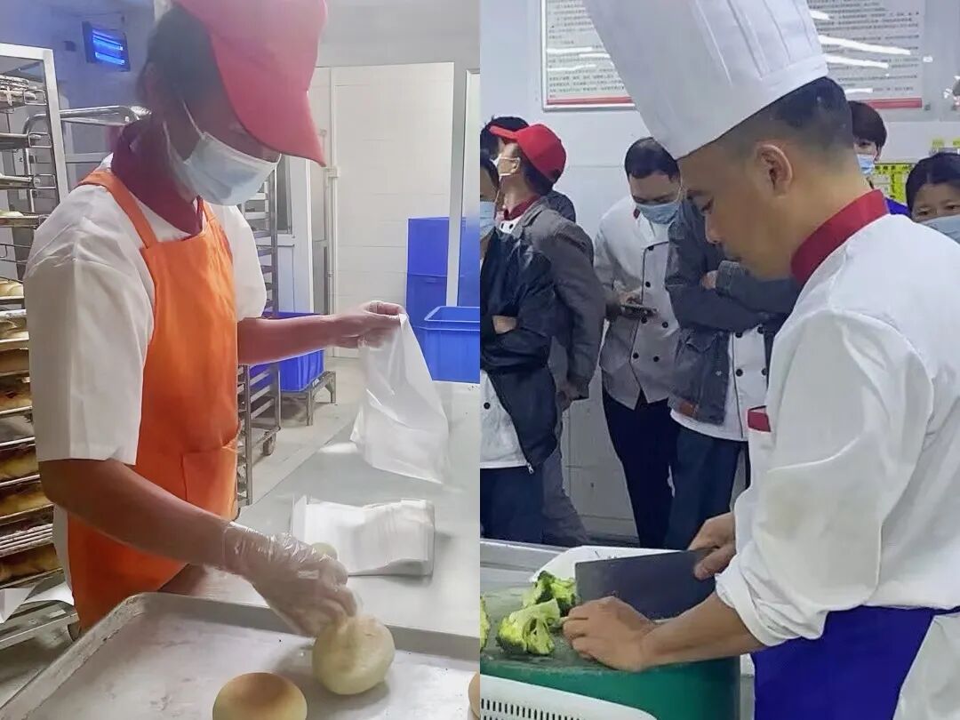 每周五开班会,刘业生总会不厌其烦地重复着:“做饮食,就像在家里做饭菜给自己的小孩吃,要按照最高的标准来做。”对于食材,他们有严格的收货、验货标准;烹饪的时候努力做到营养美味。在这样的标准下,一道又一道健康又有营养的饭菜养好了广大学子的胃。“她的细心是大家公认的。”谈及王阿姨的优点时,刘叔叔眼神中透露着自信。可以想到,每一个口感松软、甜度恰当的蛋糕背后,每一个酥脆扎实的面包背后,都有王阿姨用细心包裹起来的爱。