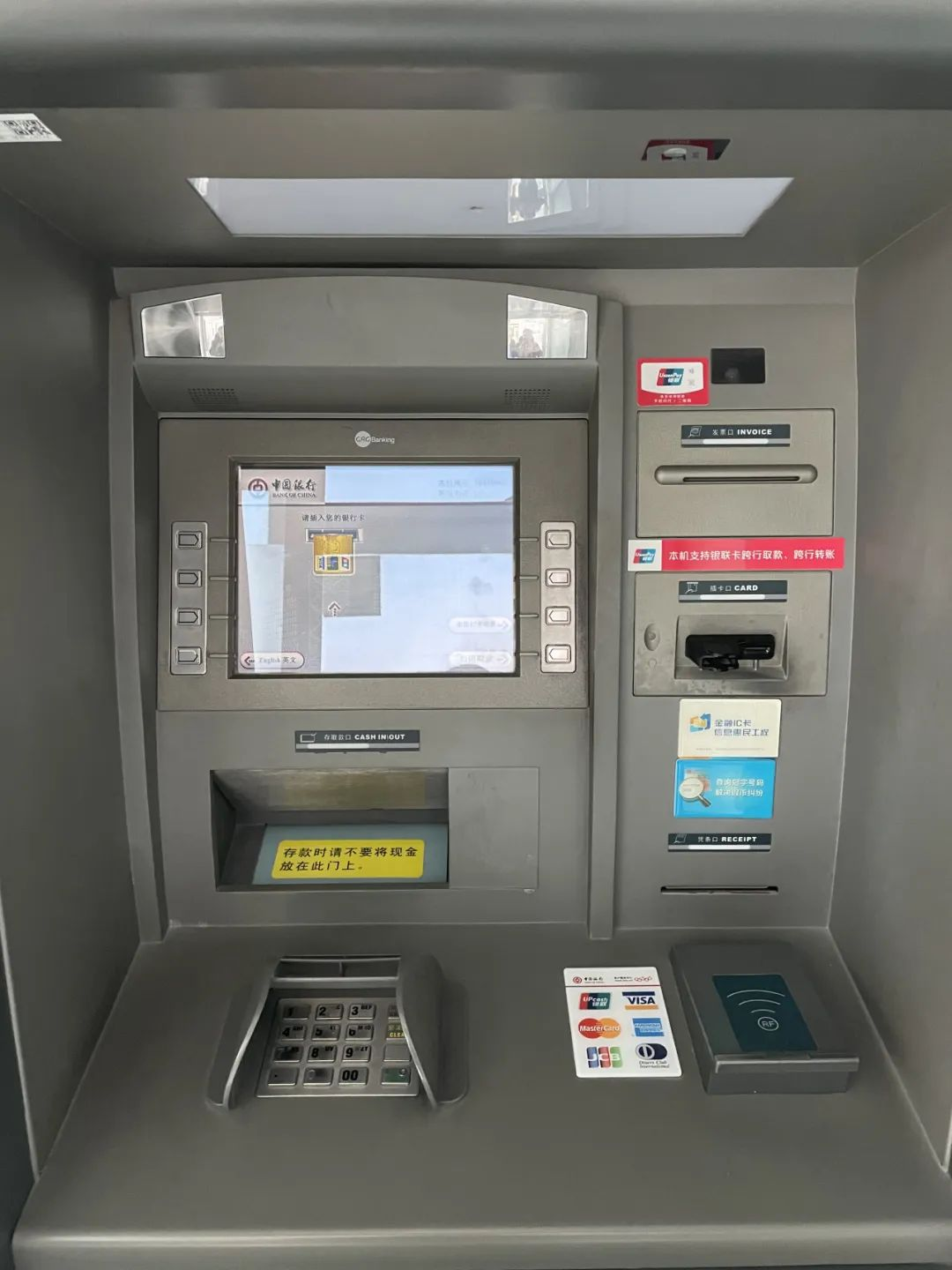 您可持境外银行卡在贴有对应银行卡组织标识的自动取款机(ATM)、存取款一体机(CRS)等自助设备直接支取人民币现金。