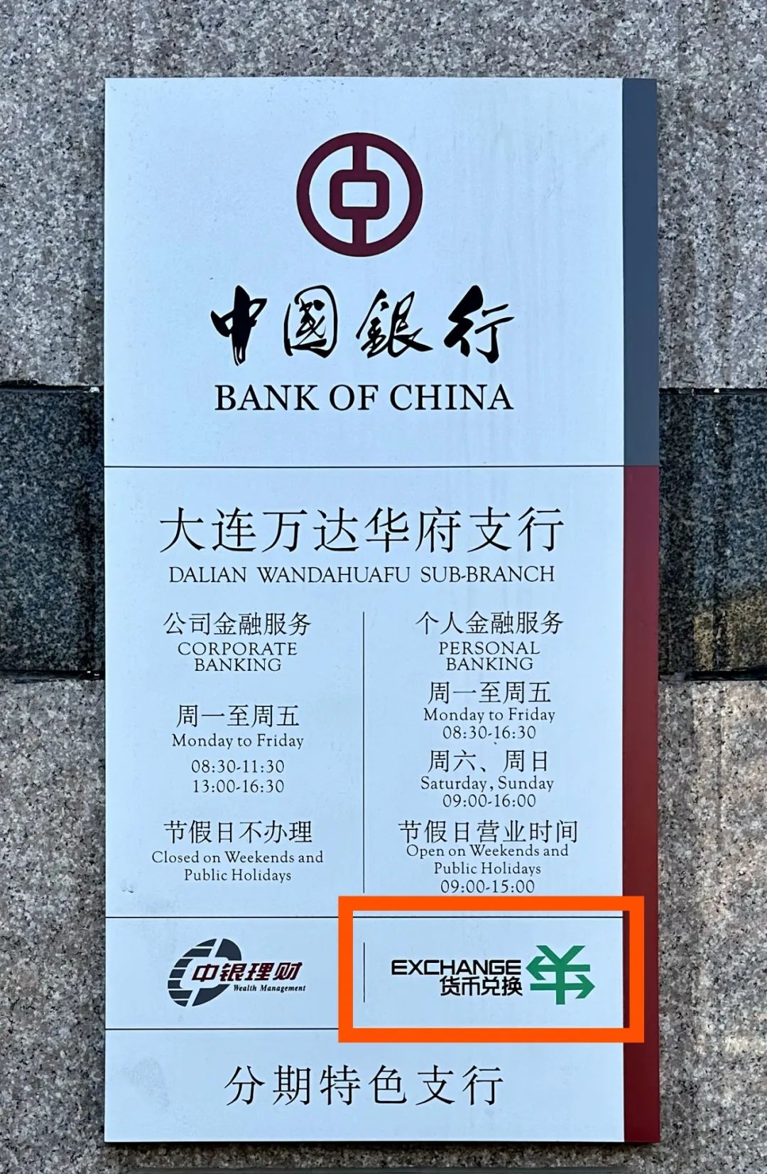 Bank branches with "Currency Exchange" signs shown can provide you with currency exchange, money change, and exchange rate query services. A valid ID is often required.