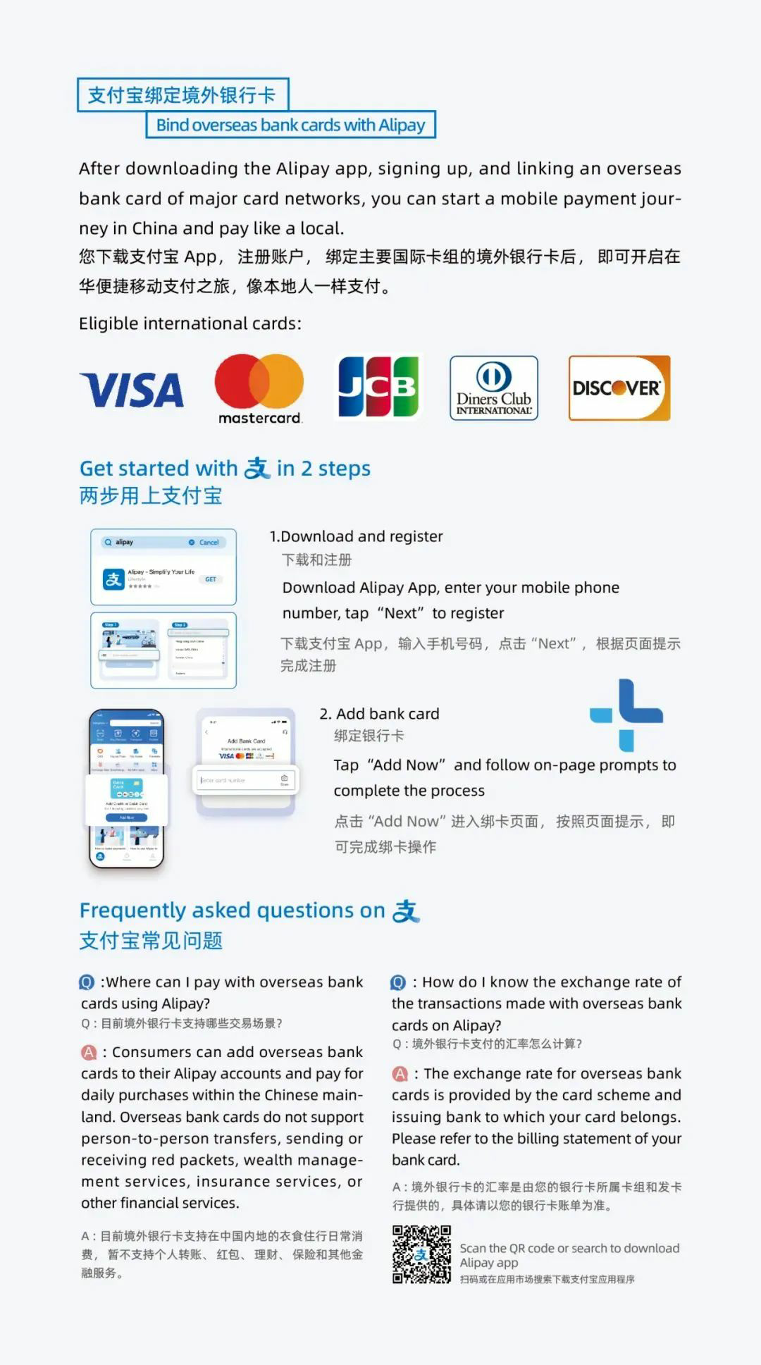 1.云闪付、支付宝、微信均支持绑定您在境外的手机号码,仅需确保您的手机已开通国际漫游即可。