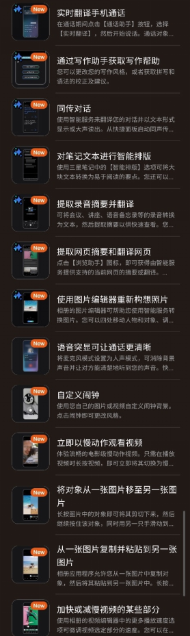 通过Galaxy AI功能可以实时翻译,笔记助手,图片助手等等操作。