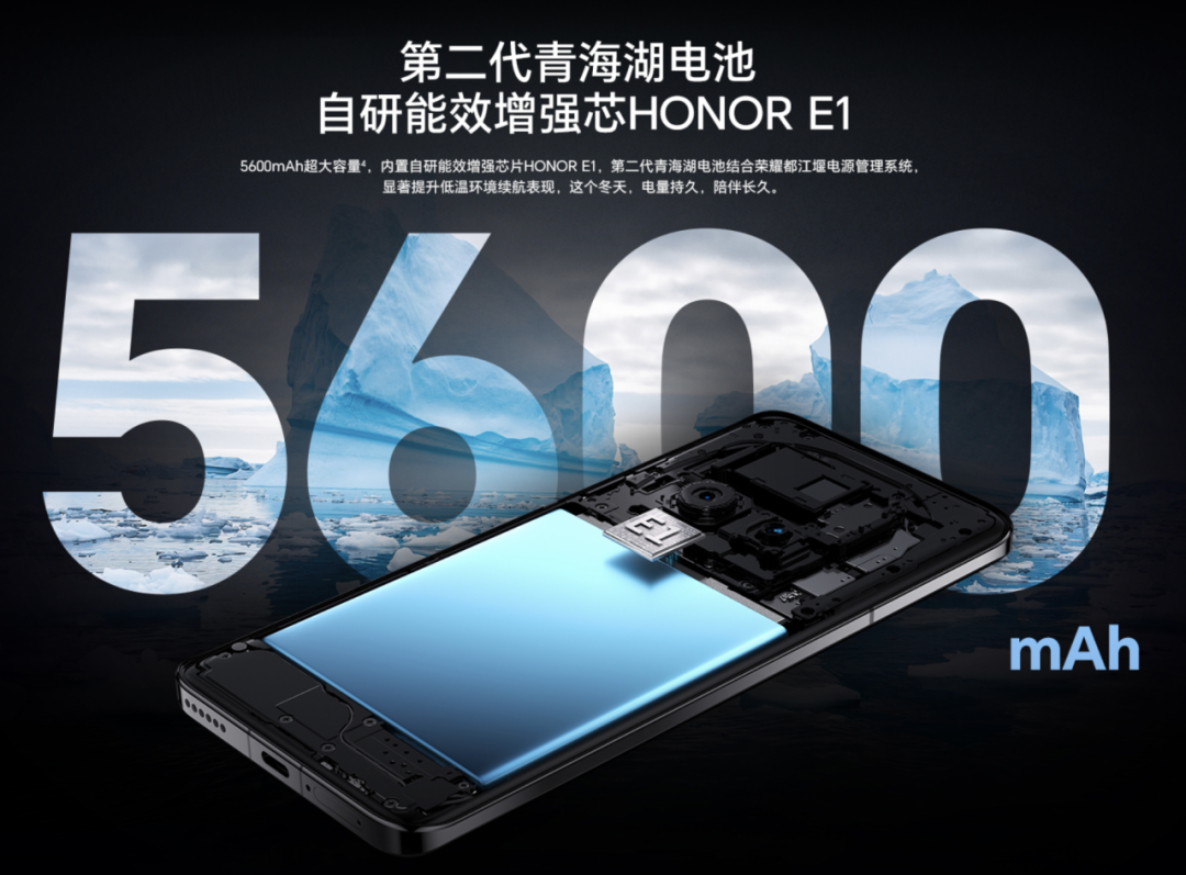 荣耀Magic6系列搭载全新升级的第二代青海湖电池,内置了全新的自研能效增强芯片HONOR E1,配合荣耀都江堰电源管理系统,通过软硬结合,实现了智慧充放和低温增强,为消费者带来全场景全天候长续航体验 。