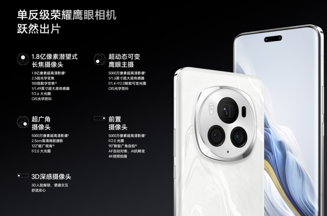荣耀Magic6系列带来全新单反级鹰眼相机,支持主摄逆光拍摄、长焦高清抓拍、鹰眼精彩抓拍等。