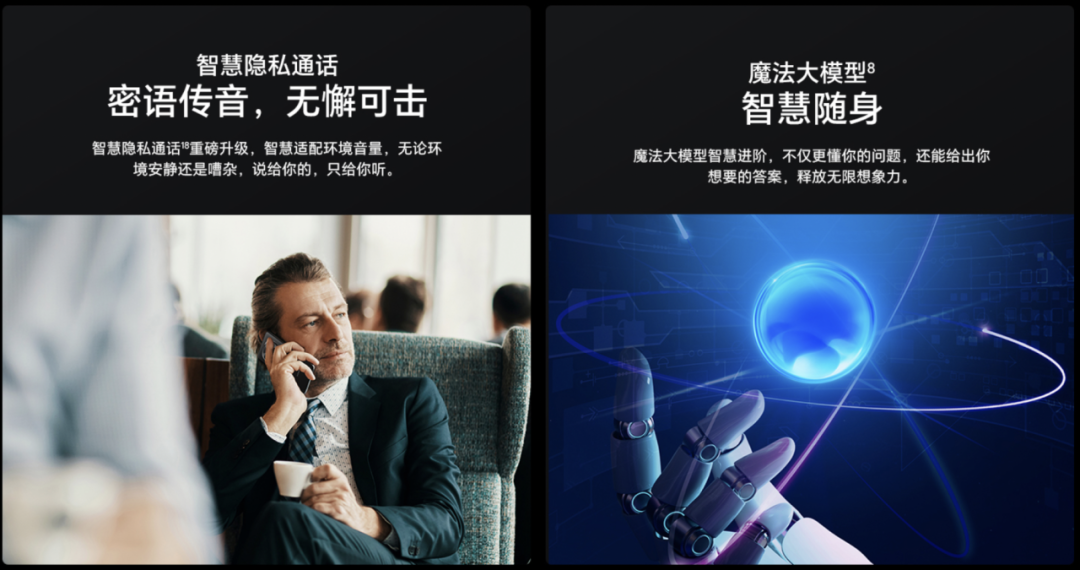 荣耀Magic6系列更首发搭载,荣耀自研70亿参数端侧平台级,AI大模型“魔法大模型”,为消费者带来魔法般的智慧体验。