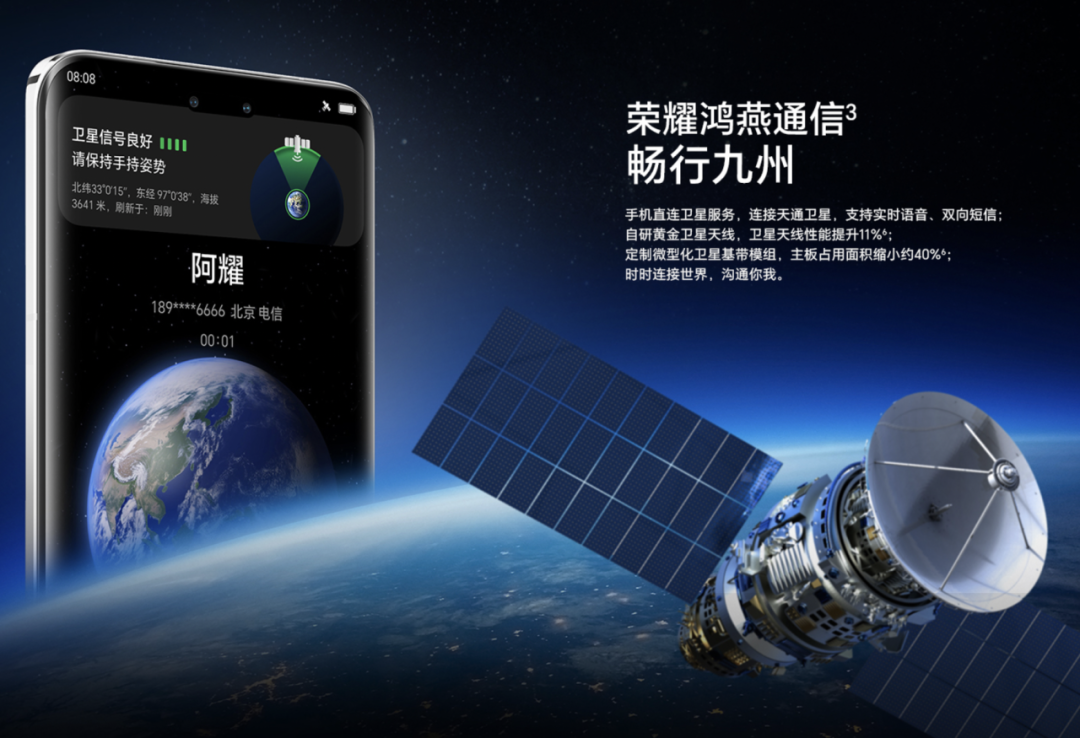 此次荣耀Magic6 Pro搭载的手机直连卫星通信技术解决方案,在鸿燕通信加持下,不仅实现了小型化,让卫星芯片面积下降约40%,还解决了终端使用卫星通信的功耗问题,连接卫星后待机功耗降低50%。