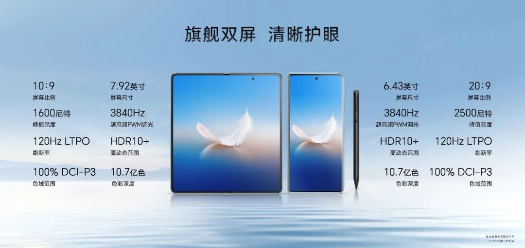 在健康显示领域,荣耀延续了内、外双屏3840Hz高频PWM调光的护眼策略,让荣耀Magic Vs2 进入“频闪安全区域”(高于3.125KHz),达到零风险调光护眼级别,减轻用户的用眼压力。