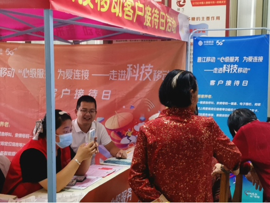 移动助老,智享生活。10月21日早上8:00,晋江移动协同罗裳社区开展“心级服务 为爱连接”—走进科技移动客户接待日活动。晋江移动副总经理王瑞斌走进罗裳社区老年服务活动中心与中心老年人亲切交谈,了解老年人在使用移动业务、网络及新兴通信应用的服务需求,并针对老年客户的疑问进行详细的解答。