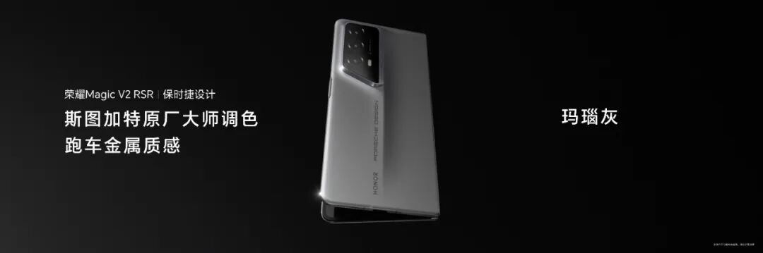荣耀Magic V2 RSR 保时捷设计是荣耀以人为本的设计理念与保时捷设计功能美学结合的首款创新产品,其设计语言与豪华跑车深度结合。