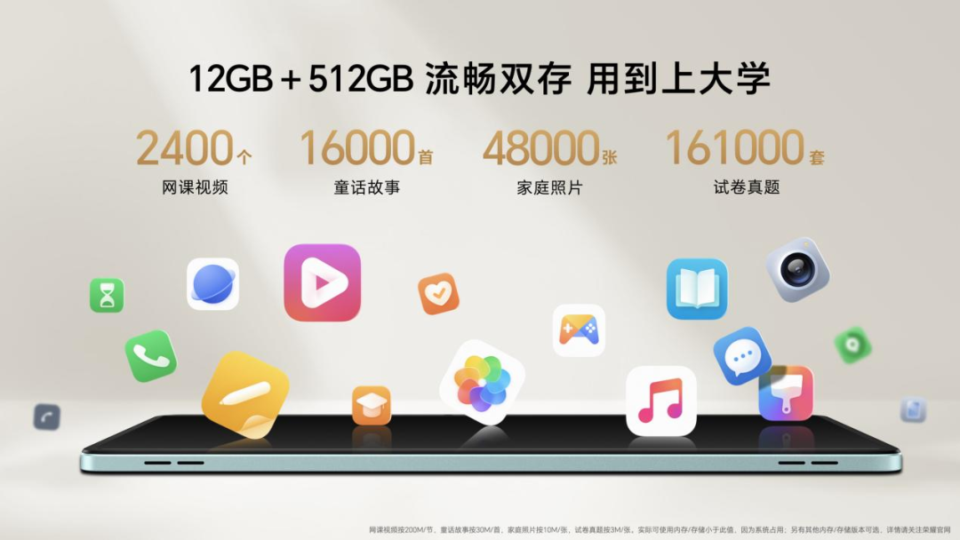 荣耀平板9还开启平板大内存普及风暴,带来12GB+512GB的大内存组合,能够储存上千部网课视频。借助RAM Turbo黑科技,荣耀平板9还能实现后台最多保活16个APP,并带来36个月不卡顿的流畅体验。除此之外,荣耀平板9还支持档位最大的8300mAh电池和35W超级快充组合,让孩子高效学习一整天。