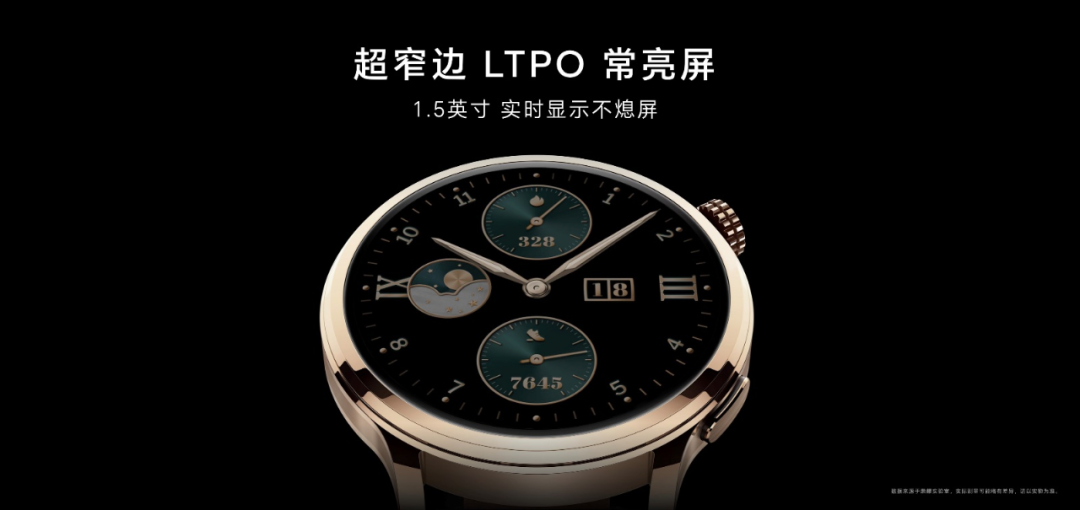 荣耀手表4 Pro搭载1.5英寸LTPO常亮屏,通过更高的设计技巧和更精细的制造工艺控制,将屏幕的边框收窄至1.9mm的惊人水平,并达成了82.6%的高屏占比,在同价位的智能手表中实现了明显的领先,展现出极致的视觉享受;与手表中框几乎融为一体的2.5D流光曲面设计,更是让触摸操作细腻流畅、轻松惬意。而LTPO常亮屏,让手表在节能和美观之间找到最佳平衡,无论何时何地都时刻展示着腕上的独特魅力。
