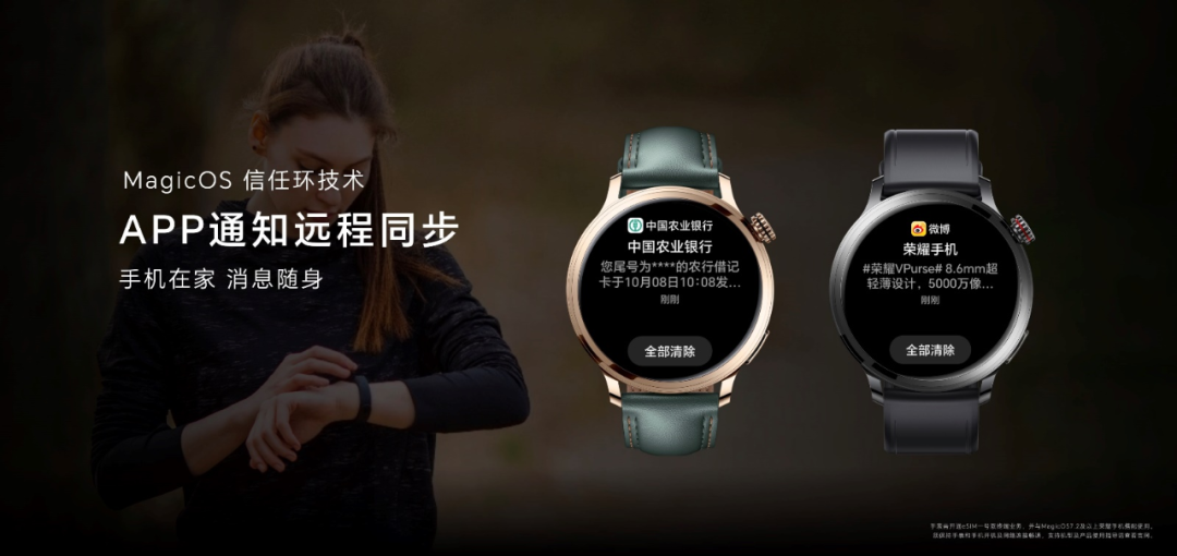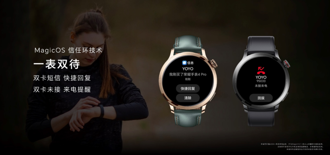 荣耀手表4 Pro支持eSIM独立通信功能,即便用户不携带手机出门,比如跑步、滑板、游泳等运动时,也可以让用户随时与外界保持联系。与此同时,荣耀手表4 Pro还在“以人为中心”的智慧解决方案主导下,引入MagicOS智能生态并加入MagicRing信任环技术,让智能手表可以与手机在远场自动组网、可信成环,即便手表远离手机独立使用,也可以收到各种APP的通知,以及手机的来电或者短信提醒,让信息随心流转、远场可控。更具创新的是,荣耀手表4 Pro还支持一表双待功能,能同时支持手机上主、副两张卡的电话、短信的消息通知,让智能手表从此拥有像手机一样“双卡双待”的魅力!