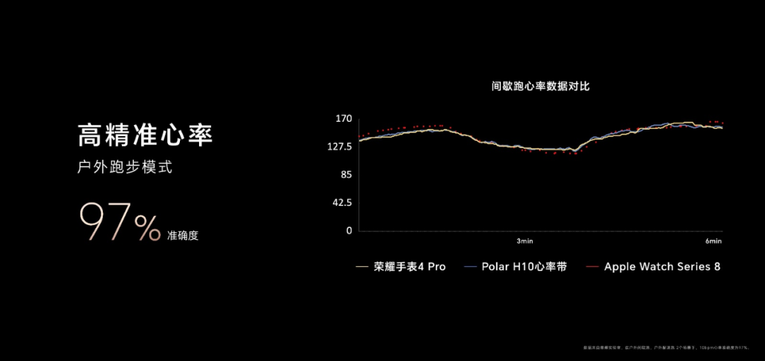 荣耀还致力于打造更懂你、更专业、更全面的运动健康体系。荣耀手表4 Pro全新8通道高感光PPG传感器、高透模组让进光量提升50%,实现走路、跑步等场景下综合心率准确性大幅提升。荣耀手表4 Pro搭载全新升级的引擎及心率大模型,大幅度提升无规律、高强度间歇等运动场景的监测能力,针对手表晃动信号流失场景,推出独家运动数据校准技术,大幅度提升模型预测及抗噪检测能力,实现双向校准。