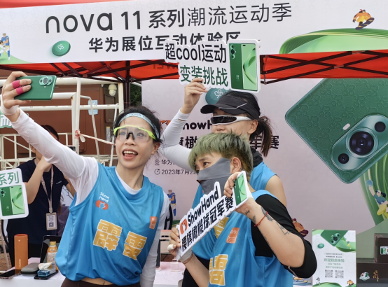 7月22日-7月23日,由天⾏达阵联合深圳sport zone、佛⼭醒狮俱乐部和华为智能生活馆·佛山长华汇承办的nova11系列潮流运动季-showhand腰旗橄榄球冠军赛活动盛大开幕。活动现场设置了nova11系列潮流运动季-华为展位互动体验区,跟随nova11镜头即可轻松捕捉到潮流运动中的精彩瞬间,潮流运动玩家都有自己的“小圈子”,彼此在一起时少不了各种自拍,选手通过体验HUAWEI nova11系列强大的自拍人像追踪和人像特写镜头功能,拍下美照即可免费获取精美伴手礼一份。HUAWEI nova11系列11号色以充满活力的绿色作为主打色,并加持有业界首创的星耀素皮压花工艺,可以充分满足潮流运动爱好者的个性化需求,尽显潮流运动人士的时尚气质。