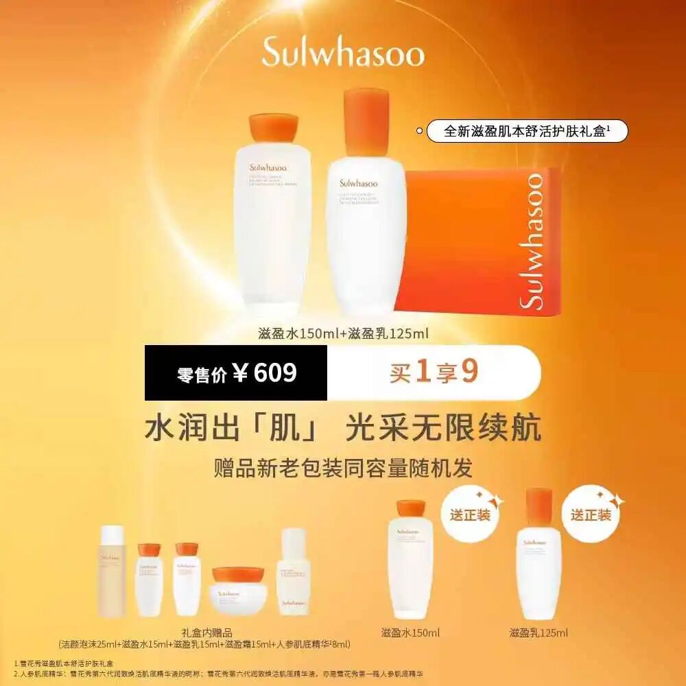 雪花秀的滋盈水,水感精华质地,清爽好吸收。从内在调节水油平衡,真的很滋润,补水保湿就用它~滋盈乳,升级成按压泵头,干净卫生,方便取量,祛黄提亮届的扛把子。一套搭配改善干燥粗糙,滋养肌肤。主打一个保湿补水、祛黄提亮,复配多重中草药成分,在保湿修护平衡肌肤水油的同时,还能改善毛孔粗糙,细腻肤质哦,淡淡的中草药味,闻起来超级安心~水乳的质地偏浓厚一些,但是肤感轻盈很好吸收哒。