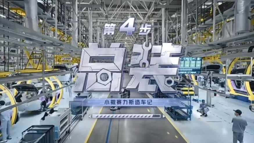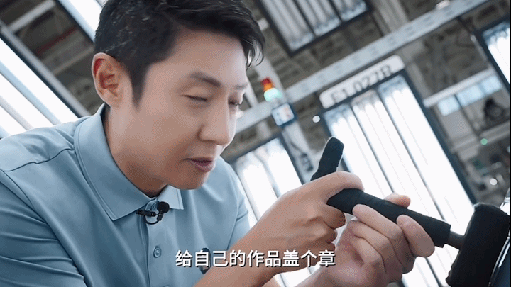最后总装车辆下线,撒贝宁亲手给自己参与制造的那台贴上了AITO的logo,一台车就这样被造了出来。