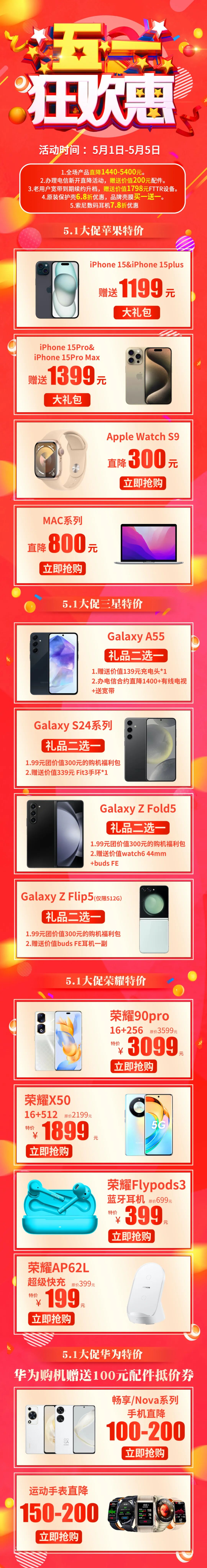 摘要:五一狂欢惠!iPhone 15赠送1199大礼包,三星全场二选一!