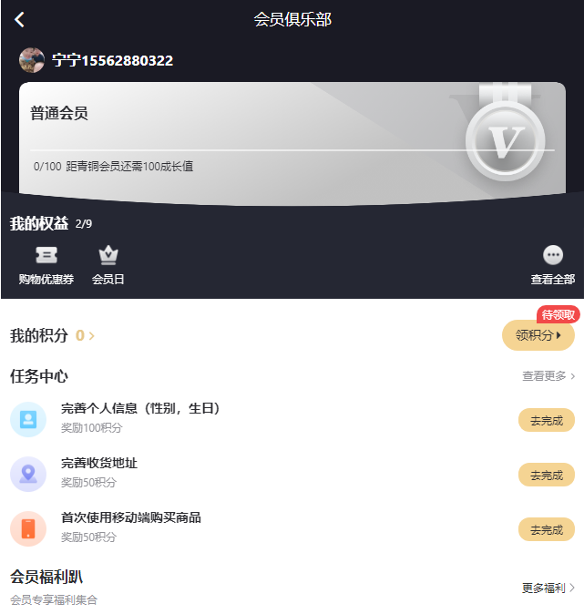 点击我的进入会员俱乐部。