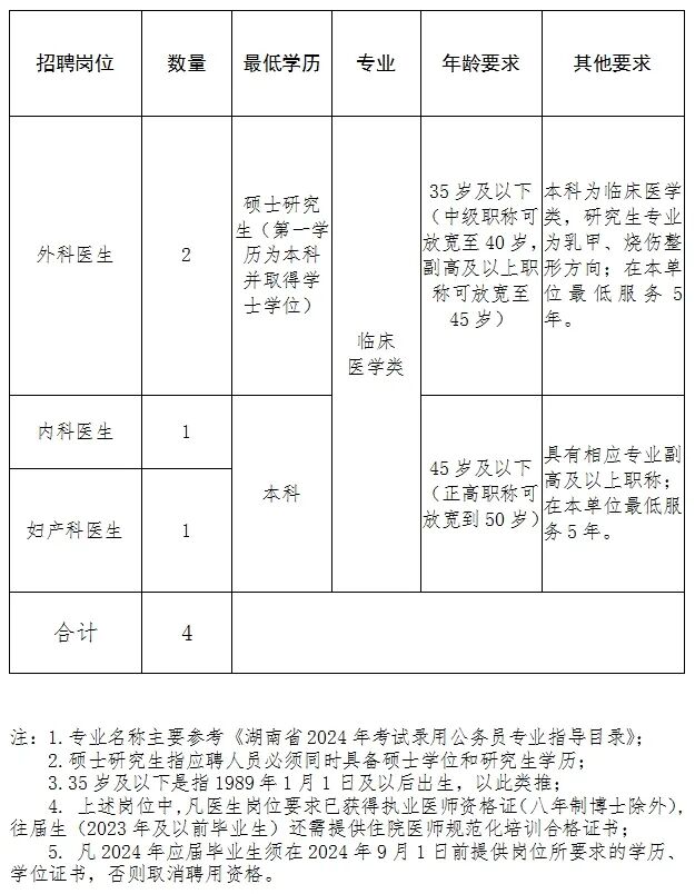 因工作需要,常德市妇幼保健院拟向社会公开招聘高层次人才4名。公告如下。