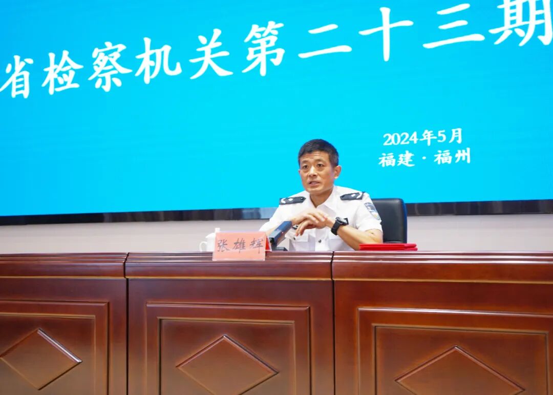 为深入学习贯彻习近平新时代中国特色社会主义思想,落实最高检《关于加强新时代检察队伍建设的意见》,促进全省检察机关司法警察工作进一步加强和规范,更好服务和保障检察办案工作。5月13日至17日,全省检察机关第二十三期司法警察培训班在福建省检察官学院举办,全省三级检察院共51名拟晋(授)衔司法警察参加培训。受省院党组成员、检委会专职委员李航委托,省院法警总队张雄辉总队长主持开班式并讲话。