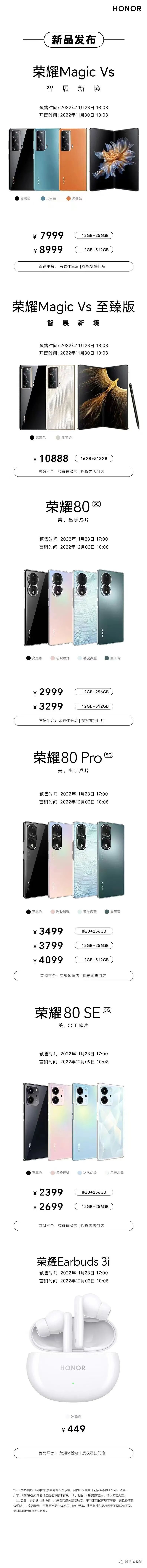 11月23日荣耀正式发布了新一代荣耀数字系列迭代产品:荣耀80系列,该系列由荣耀80SE、荣耀80标准版、荣耀80Pro三款新机组成,官方售价分别是2399、2699、3499元起。值得一提的是这场发布会还带来了一款售价449元的高性价比蓝牙耳机荣耀Earbuds 3i,32小时超长续航和32db主动降噪的优点可以足够满足日常使用。