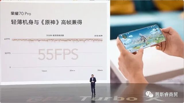想流畅运行光靠硬件可不行,荣耀70系列预装了Magic UI 6.1操作系统,其支持GPU Turbo X,通过GPU超级渲染技术可以有效提升GPU性能,荣耀70 Pro《王者荣耀》超高分辨率高清画面1小时平均118帧,《原神》极高画质30分钟平均55帧。