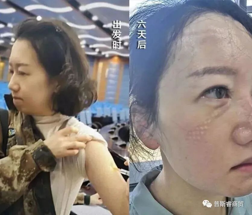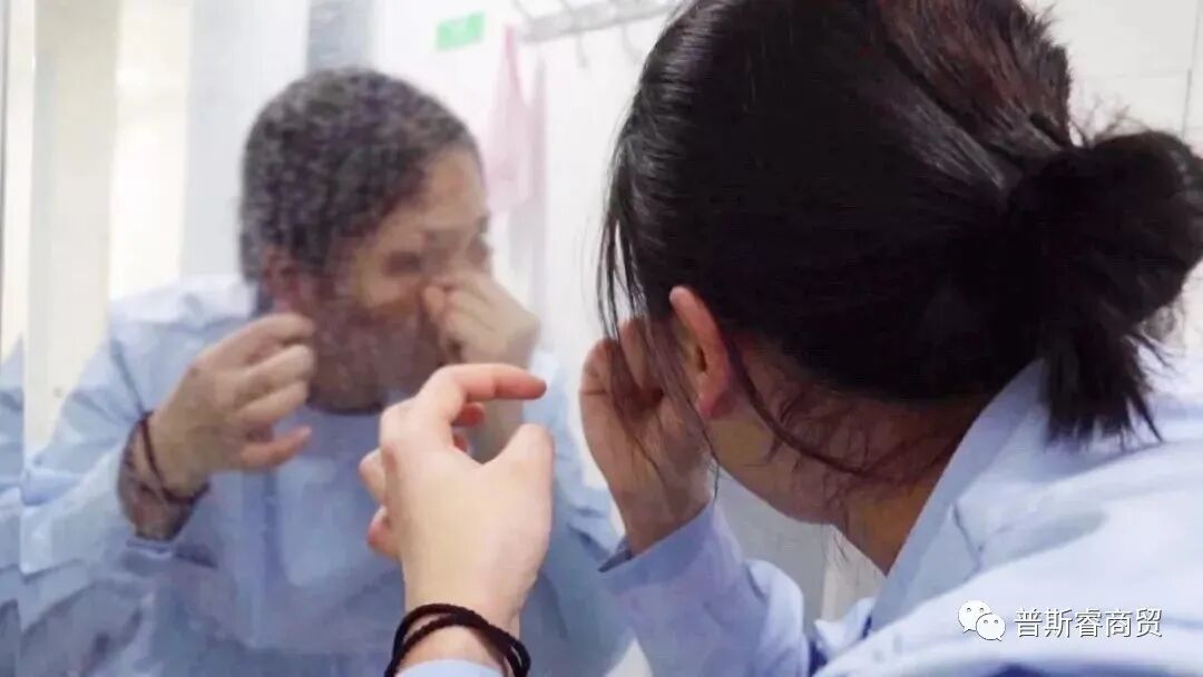 她们满脸口罩压痕,眼神却依旧坚毅。