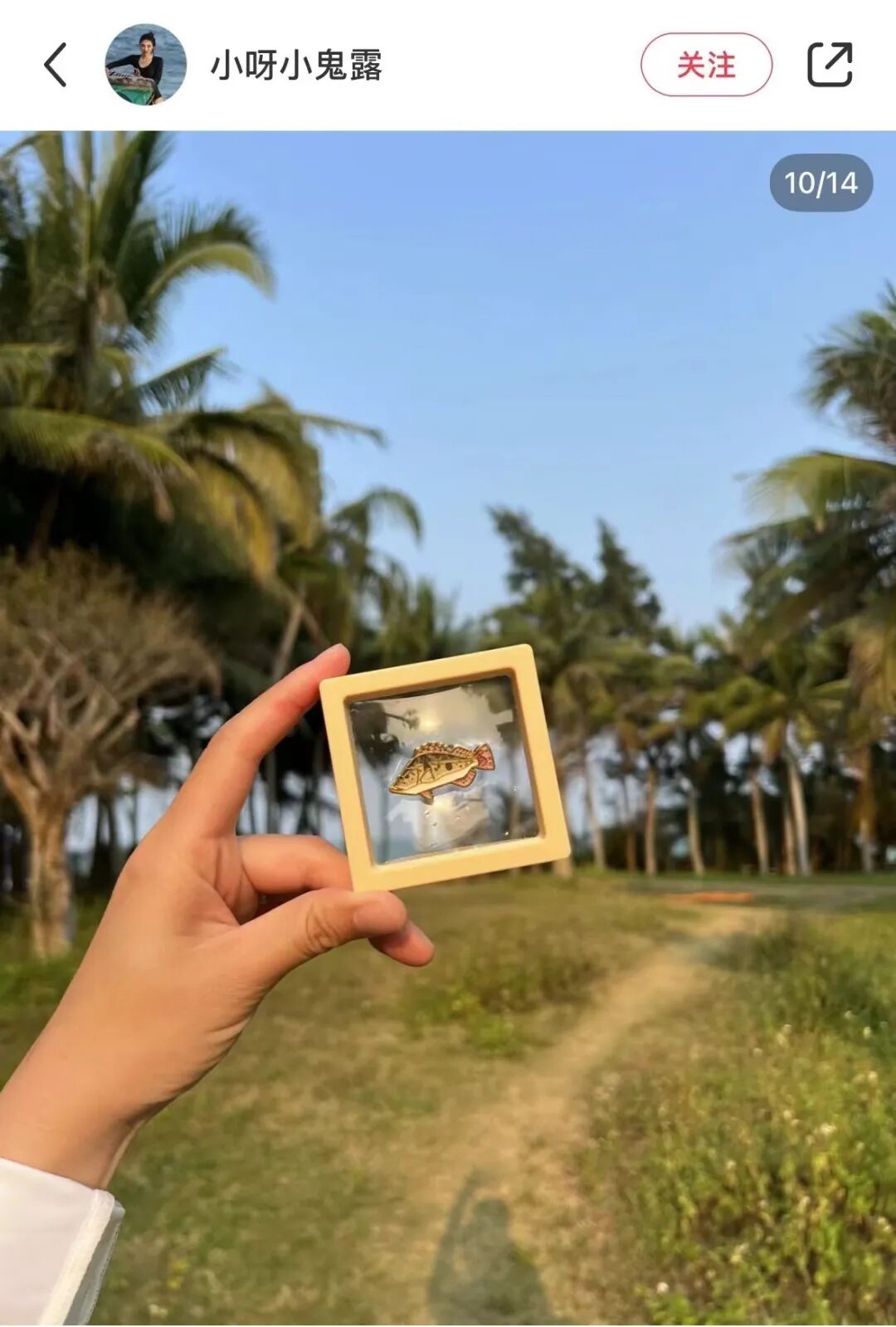 喜欢钓鱼的@小呀小鬼露苦思冥想半小时,终于决定在海边的石头里藏下一条“鱼”,那是一枚等待新主人的小鱼徽章。