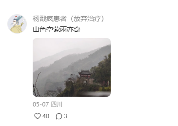 @墨小白 见到的雨后空蒙山色,引得评论区大家诗兴大发,浸透古韵的诗句与自然美景遥相呼应。