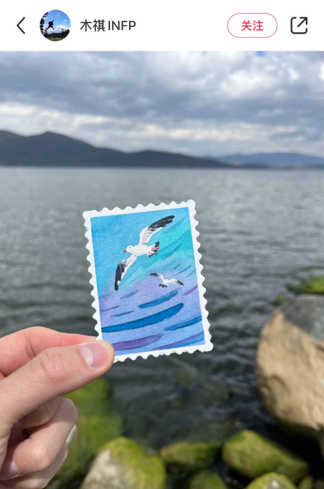 有人将自己擅长和热爱的藏在熟悉的自留地。@木祺INFP 喜欢写生,大理的海鸥、昆明的蓝花楹、大理的喜洲稻田被他画成了三幅小画,藏在了三座城市。