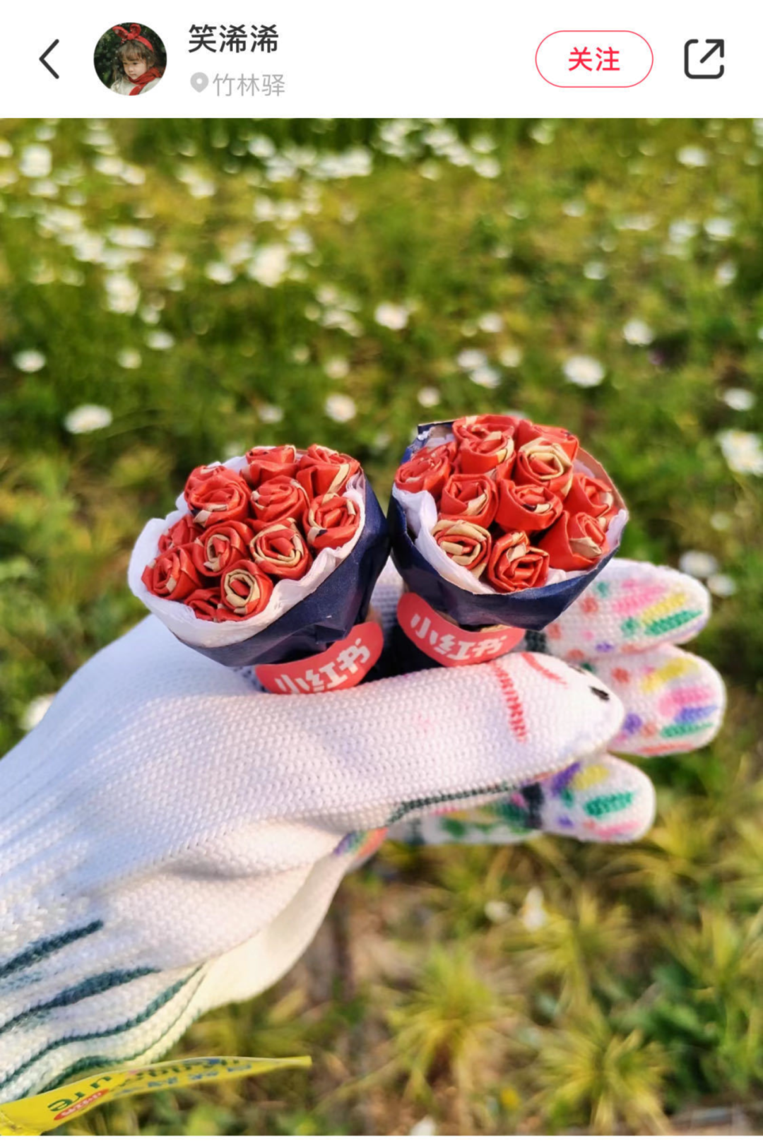 @笑浠浠 的宝藏里,藏着对自然的爱与护。她将外卖袋变废为宝,制成了小小的玫瑰花束,希望赠人玫瑰手有余香,希望大家都能爱护自然。