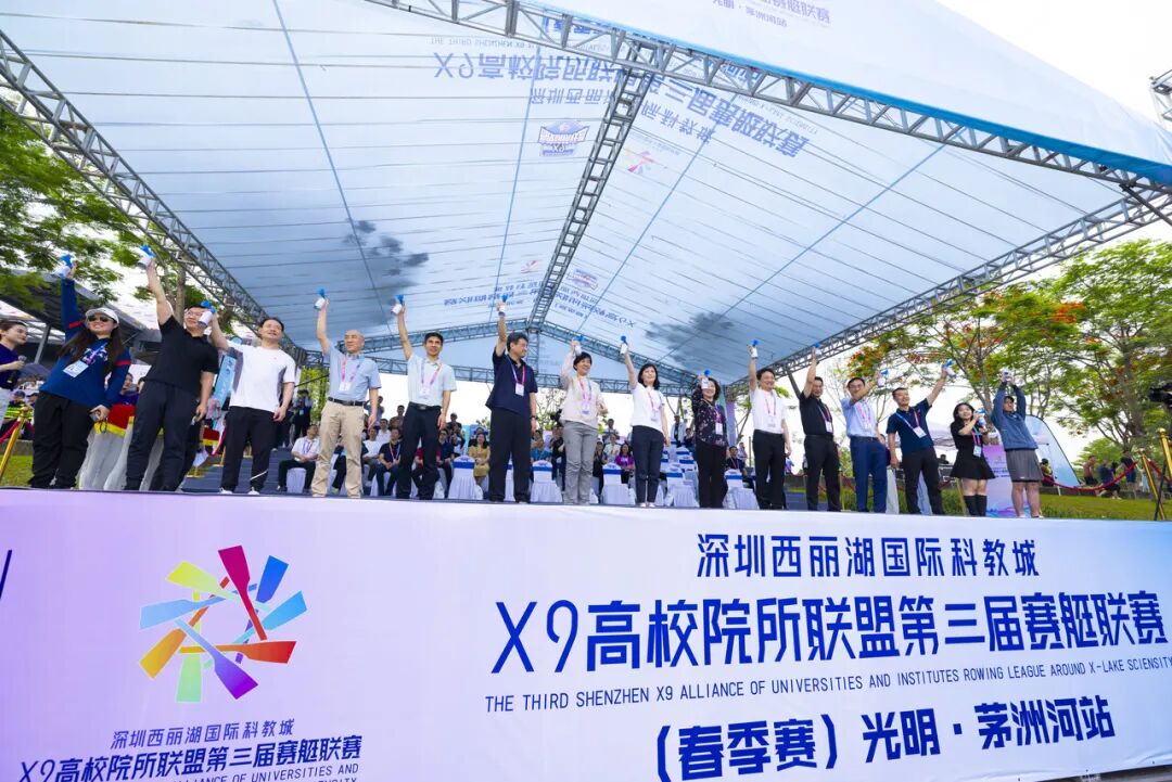 深圳市政府副秘书长吴筠,深圳市委教育工委书记、市教育局党组书记、局长郑秀玉,清华大学深圳国际研究生院院长欧阳证、深圳市光明区委书记蔡颖、深圳市光明区人民政府区长邱浩航、深圳市文化广电旅游体育局副局长何建辉等领导以及X9联盟单位负责人、运动员代表等参与活动。