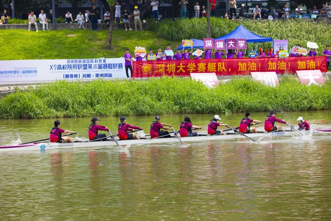 光明区茅洲河站赛分为学生组男子八人单桨有舵手、学生组男女混合八人单桨有舵手及专家组八人单桨有舵手三个组别。当天比赛,清华大学深圳国际研究生院凭借出色发挥,以9.2分稳坐积分榜榜首;深圳理工大学(筹)、哈尔滨工业大学(深圳)根据目前累积积分排名位列第二名和第三名。