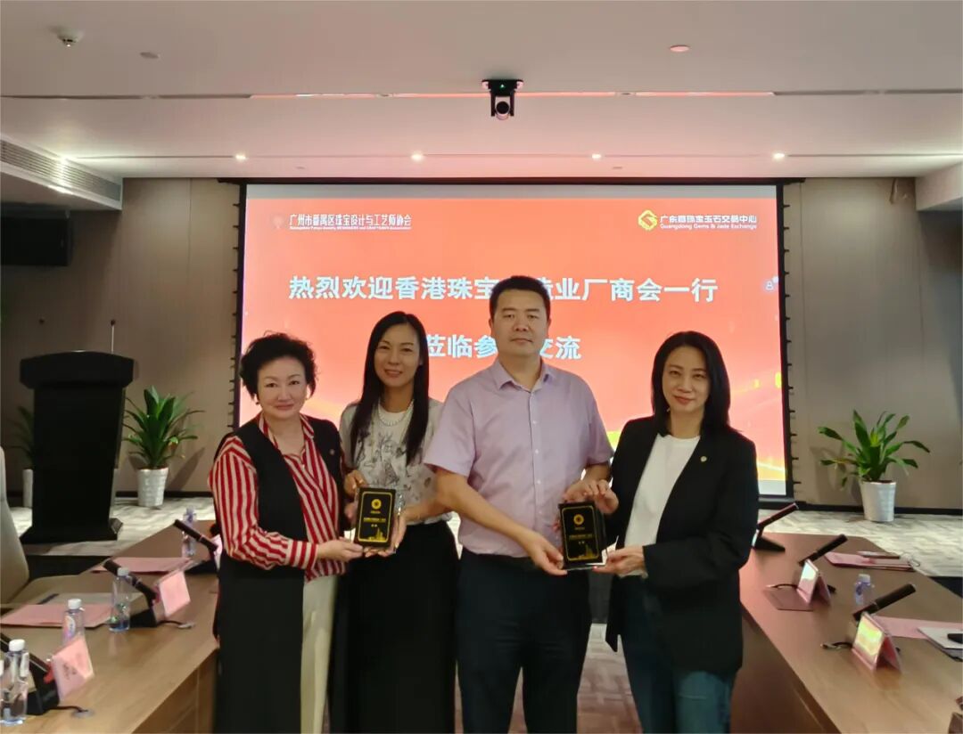 2024年5月10日,香港珠宝制造业厂商会叶美珠主席带队到广州市番禺区珠宝设计与工艺师协会、广东省珠宝玉石交易中心(以下简称“广东宝交中心”)调研交流,各方就粤港两地珠宝产业市场情况、高质量发展趋势和需求、大湾区产业互利互惠融合发展等内容,进行了深入交流。本会会长郑陈曼芝,副会长马慧、张建坤、周秉权,常务理事吴正智、张磊热切接待及参加调研。
